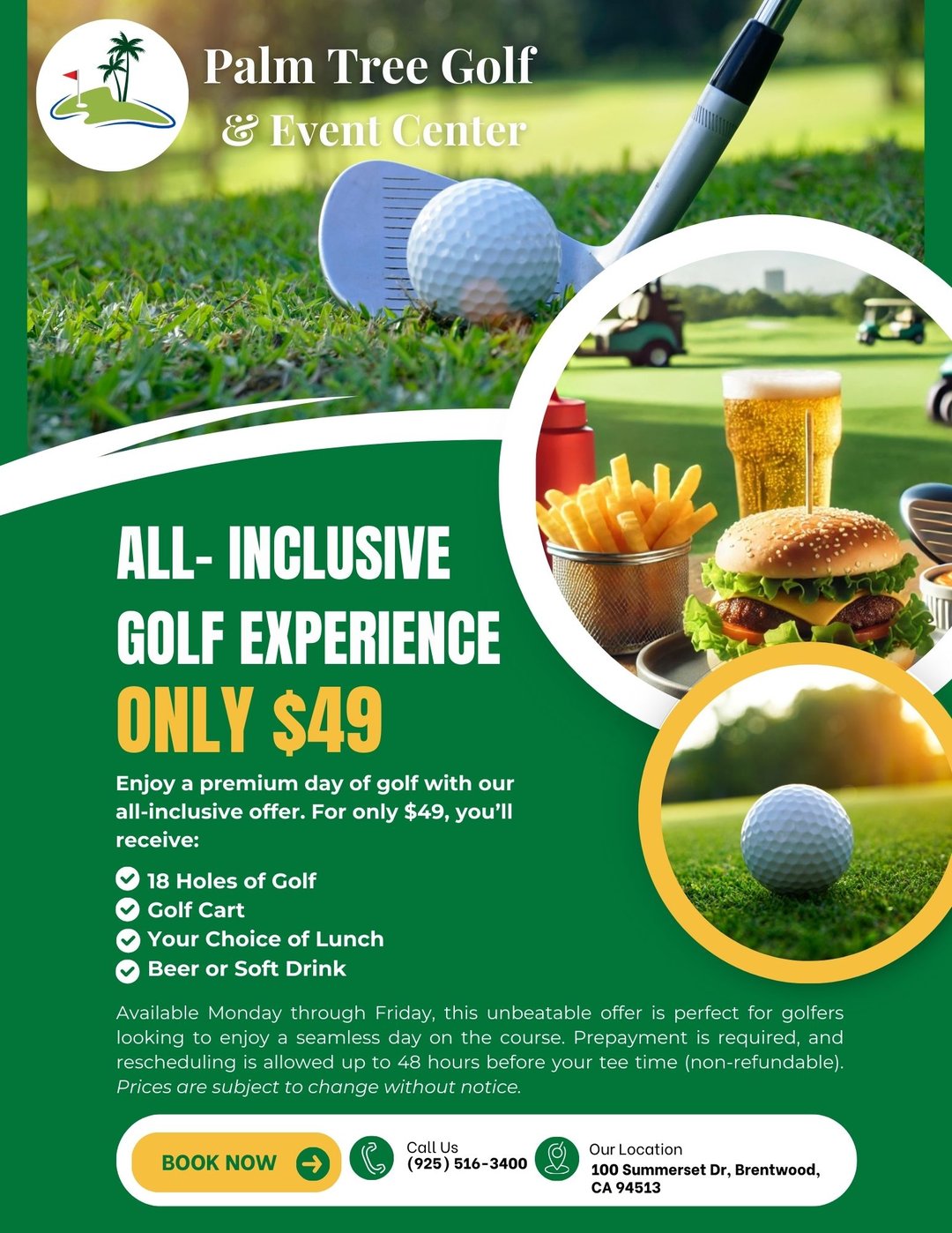 Palm Tree Golf and Event Center is Brentwood’s premier golf and event destination. Designed by renowned architect Ted Robinson, our beautifully maintained 18-hole course offers a rewarding challenge, plus twilight and mid-week specials. Year-round enjoyment continues with our state-of-the-art screen golf center and practice range. Beyond golf, we are a top choice for weddings, events, and live music, offering stunning scenery, reliable service, and unforgettable experiences. Book your tee time or plan your special event with us today!